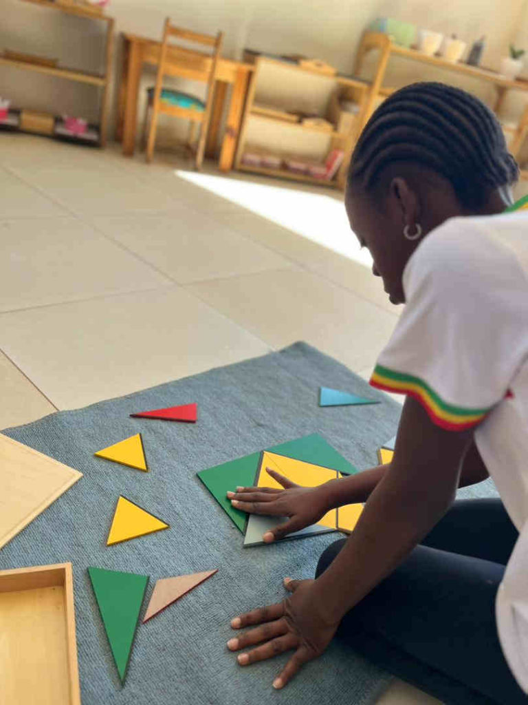 À l’âge de 3 à 6 ans, l’enfant a un besoin naturel de travailler pour lui-même, de manière indépendante. Dans les écoles Montessori, la plupart des activités sont conçues pour être réalisées en solitaire. Le guide (enseignant) présente une activité une seule fois, en plusieurs étapes, puis l’enfant répète et manipule pour intégrer pleinement l’apprentissage.